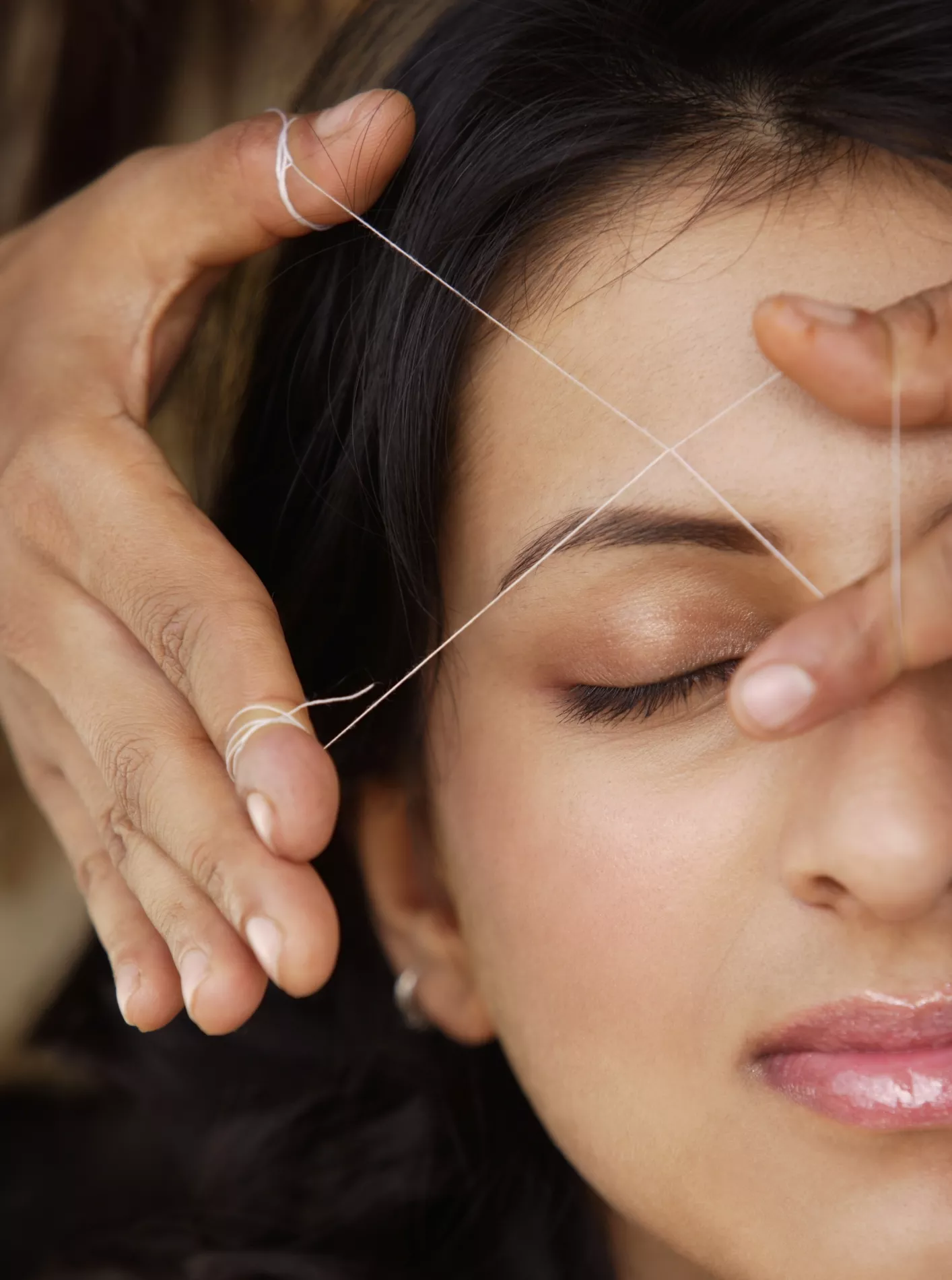 Threading is a hair removal technique that uses 100% cotton thread. The cotton thread is twisted and rolled along the surface of the skin entwining the hairs in the thread, which are then lifted quickly from the follicle. It is more precise than waxing and allows for better lines.